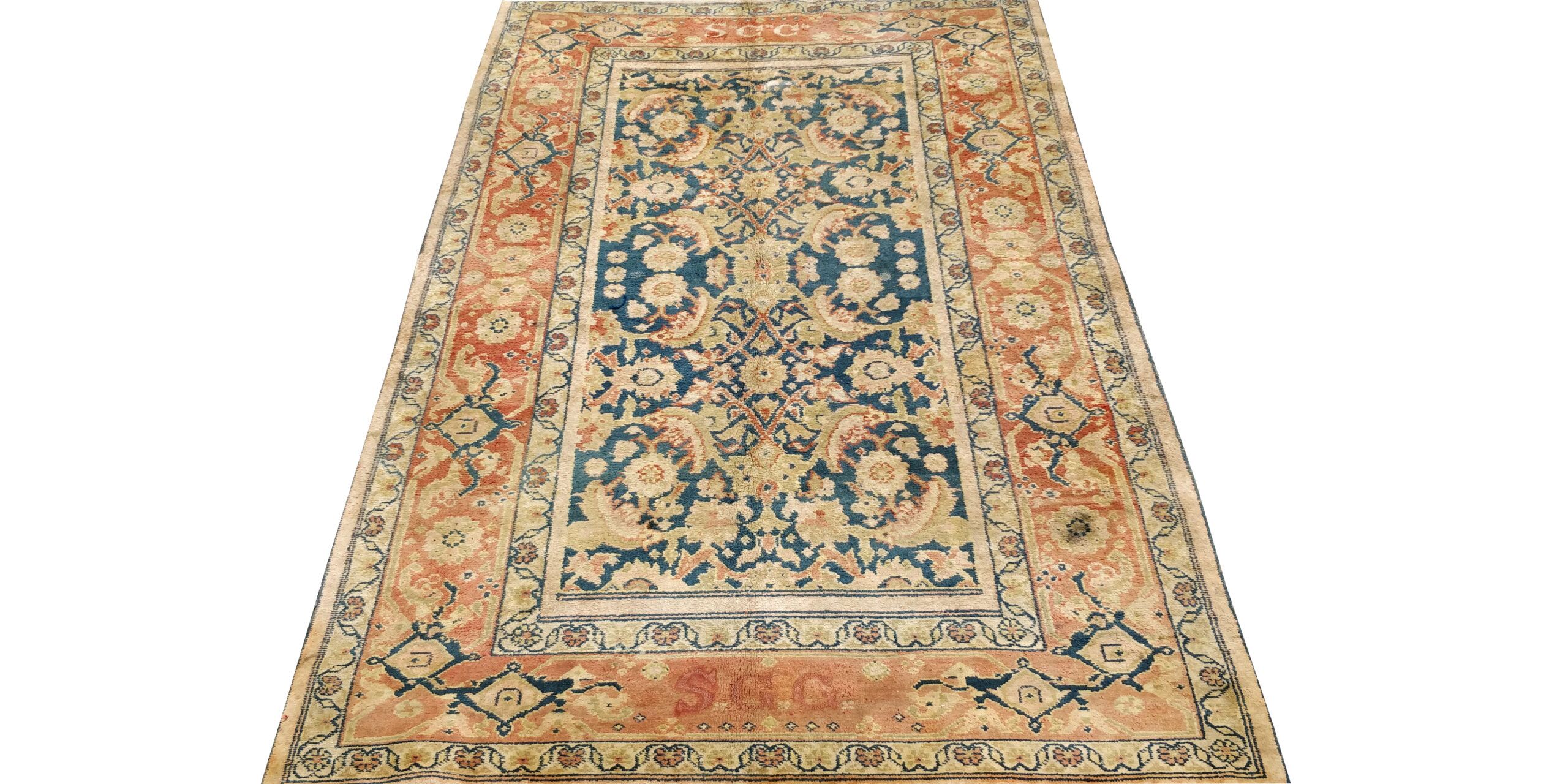 5×7 Teal Blue Semi Antique Oushak Rug
